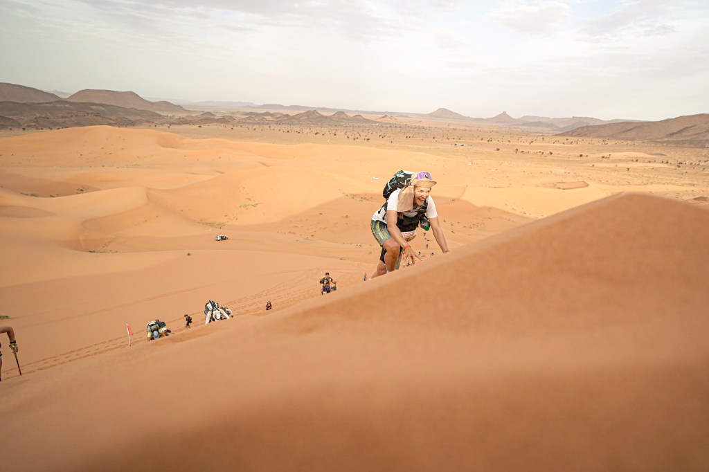 Cette étape a mis à l’épreuve le mental de beaucoup de coureurs, c’est sûr. Certes, il y avait du sable mou et un peu de chaleur, mais de mon côté, ça allait. A penser que les heures passées dans le sauna les deux derniers mois ont été bénéfiques ! J’étais dans un état d’esprit positif et je trouvais ça tout à fait normal d’avoir ce type de terrain. 🌵