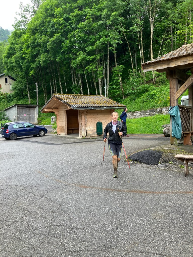 4h45 : j’arrive à Scionzier, beaucoup plus détendue. Il ne pleut plus que par intermittence et les orages se sont arrêtés. Mehdi devrait pouvoir me suivre à bicyclette sur les différents ravitaillements.