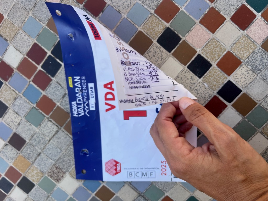 Je regarde rapidement le nouveau tracé : plus aucun sommet au-dessus de 2 200 mètres. Et là, étrangement, je ressens un immense soulagement. Comme si la montagne nous disait « Ok, on la fait, mais plus doucement cette fois ». J’ouvre ma feuille de route, je reprends tous mes temps de passage, les zones d’assistance, les points d’eau. Tout est à recalculer. Je note, je recoupe, je coche. Ça fait du bien de poser les choses. Je réajuste mes sachets de bouffe, je revois deux-trois micro-détails. Rien de révolutionnaire, mais cette fois, je le sens : ça va le faire.