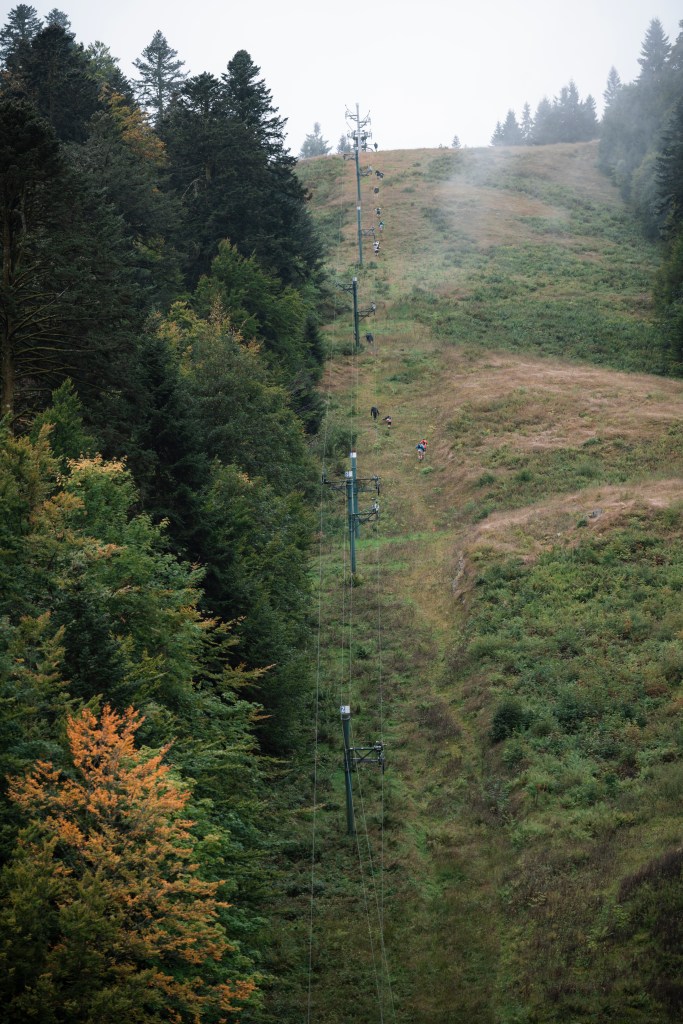 Première montée vers Romme : le terrain est super gras, ça annonce la journée. Je reste toujours à basse intensité en montant tranquillement, sans pression, je prends le temps de m’alimenter comme prévu.