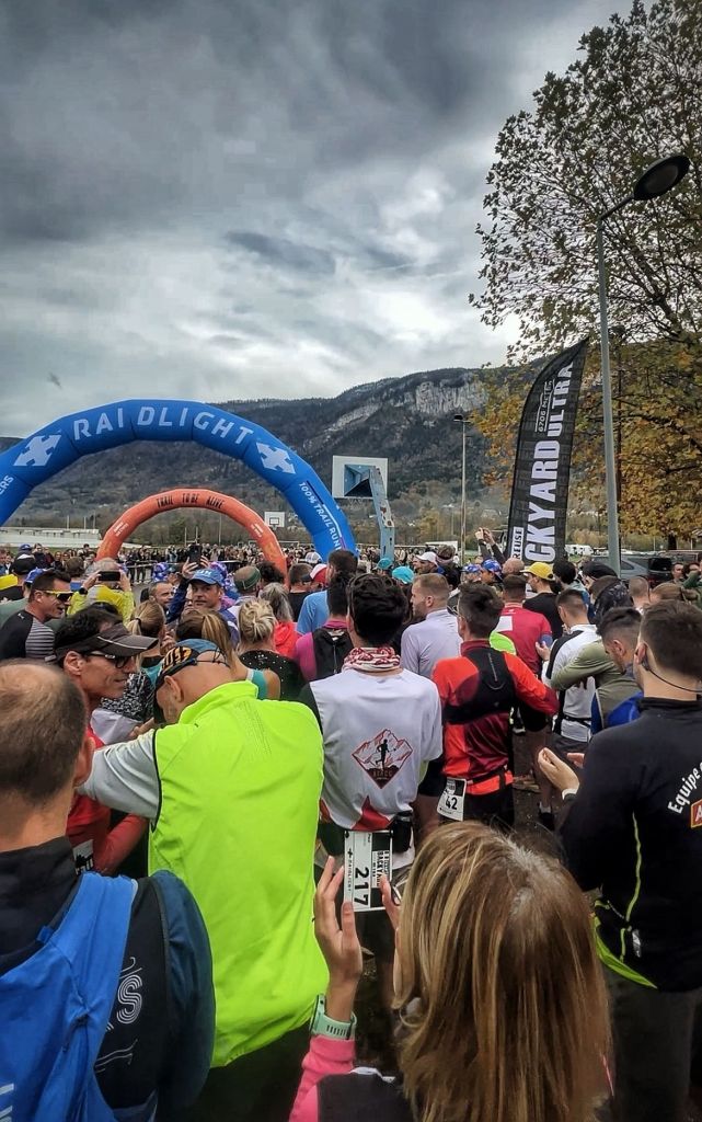 L’ambiance est électrique, comme toujours sur un ultra : tension silencieuse chez certains, euphorie contenue chez d’autres. Mehdi, ma mère et mon neveu sont là, à fond, derniers encouragements, dernières vérifications. Dans mon dos : tout ce qu’il me faut pour passer une trentaine d’heures, peut-être plus, en montagne. Dans la tête : rien, ou presque. Juste cette envie d’y aller. D’y être enfin.